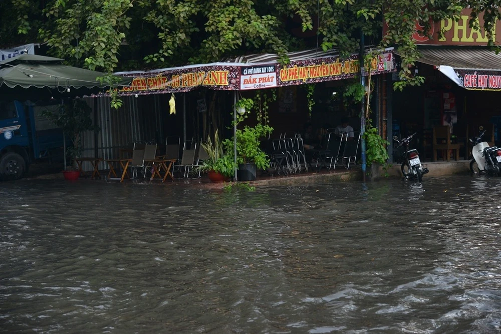 Mưa lớn, đường ngập cũng khiến việc kinh doanh, buôn bán của người dân gặp khó khăn.