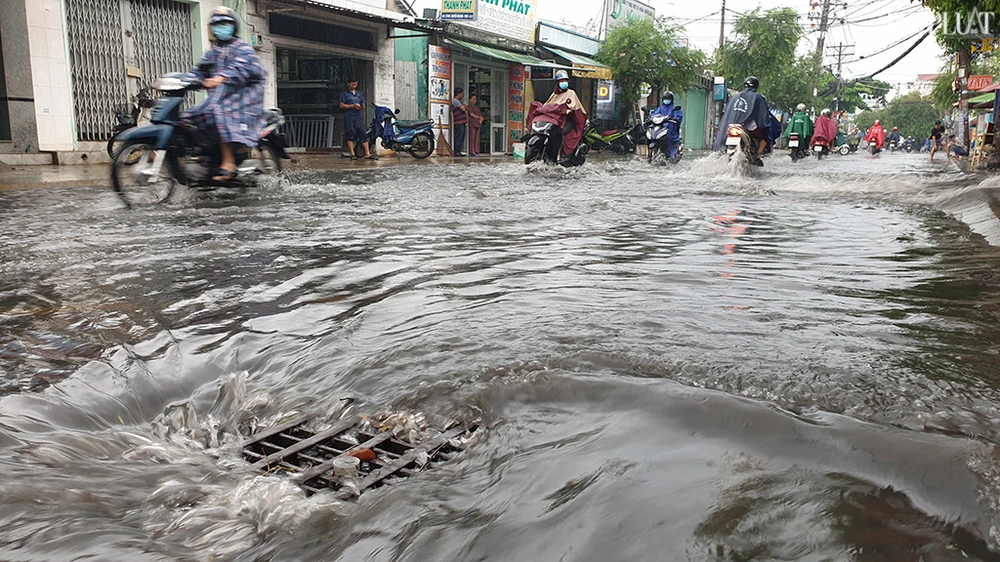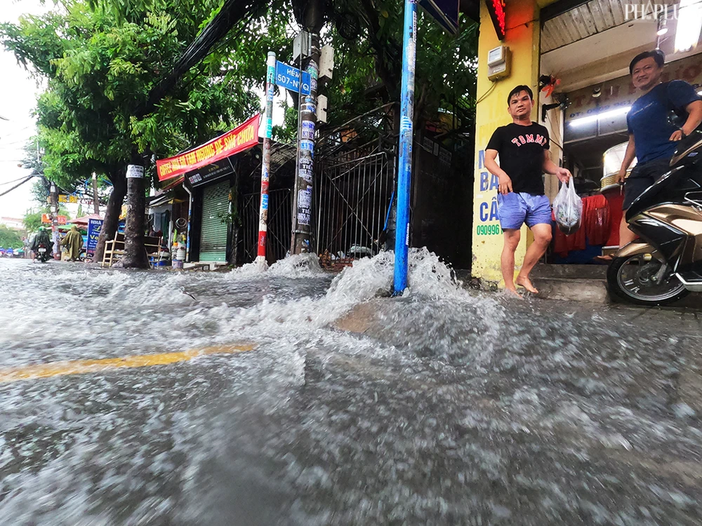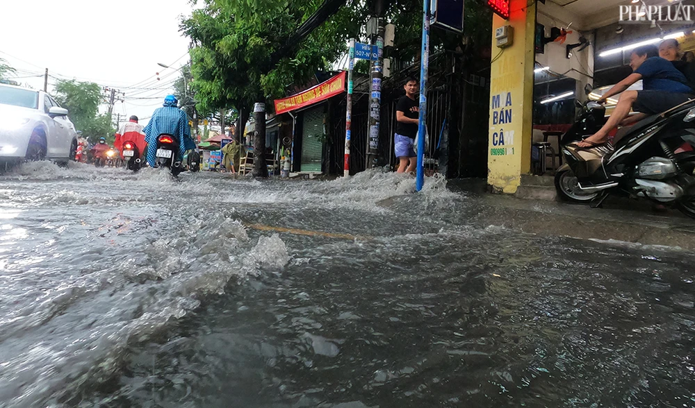Mưa lớn còn khiến nhiều tuyến đường ở khu vực quận Gò Vấp, Bình Tân, TP Thủ Đức... bị ngập trong buổi sáng cùng ngày. Ảnh NT