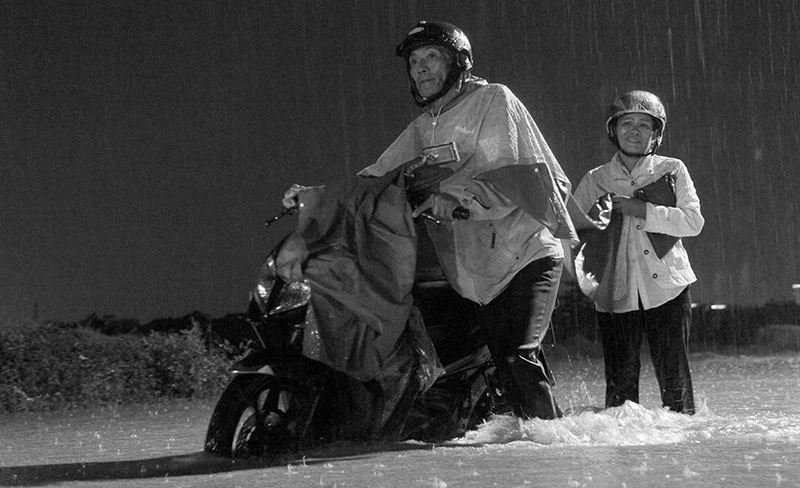 Riêng đoạn đường Lương Định của, nước ngập sâu toàn bộ đoạn đường khiến hầu hết xe máy qua lại nơi đây đều tắt máy, người lái xe phải dắt bộ ngược lại.