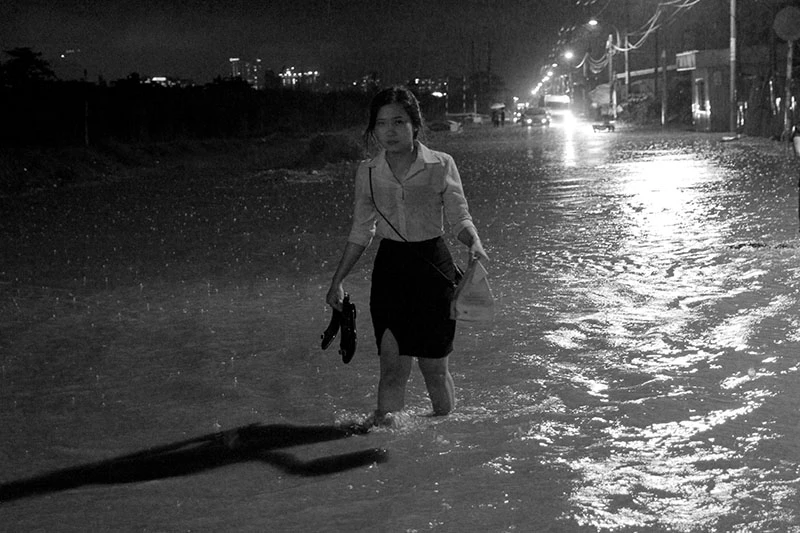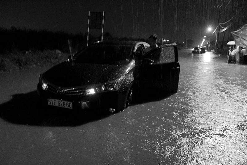 Cơn mưa tiếp tục kéo dài và nặng hạt hơn từ hơn 18h tại các quận Bình Thạnh, Thủ Đức gây ngập sâu trên nhiều đoạn đường như Đinh Bộ Lĩnh, Kha Vạn Cân, đường 38, phường Hiệp Bình Chánh, quận Thủ Đức…