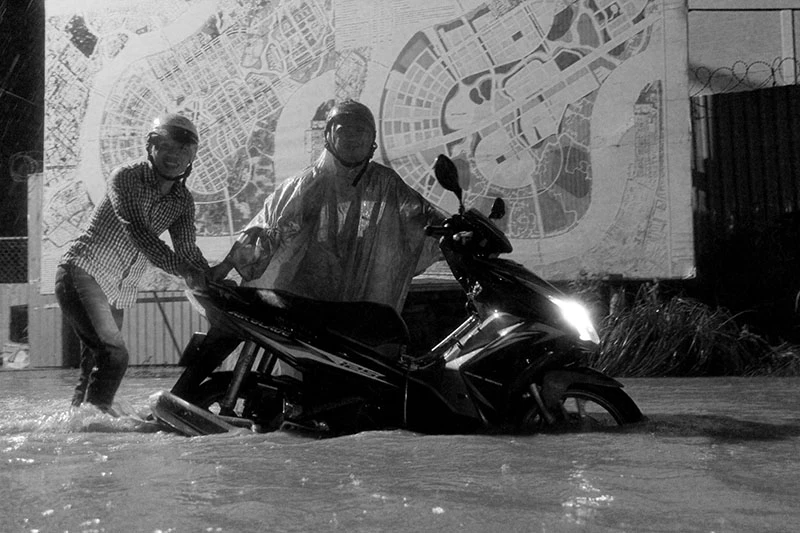 Tại các tuyến đường thường xuyên ngập như Nguyễn Hữu Cảnh (quận Bình Thạnh), Lương Định Của (quận 2) tình trạng ngập sâu vẫn diễn ra gây khó khăn cho người dân đi lại.