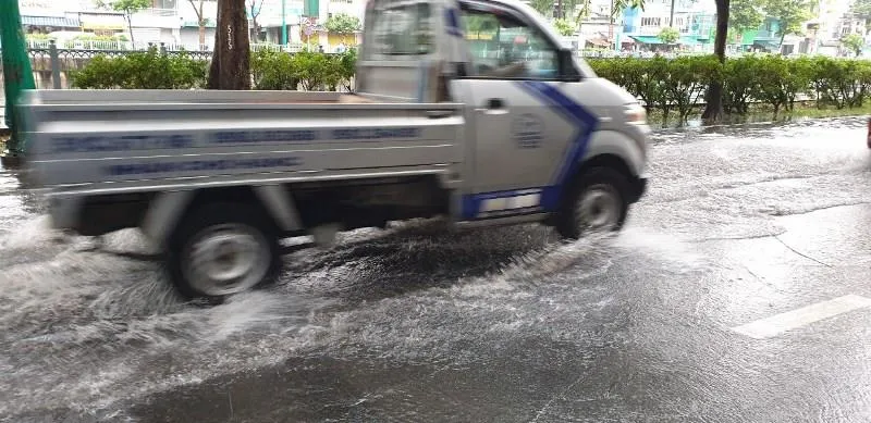 Theo ghi nhận của PV PLO, trưa ngày 10-5, toàn địa bàn TP.HCM xảy ra mưa lớn. Trong cơn mưa có gió lớn, gây khó khăn cho người tham gia giao thông. Tại đường Nguyễn Hữu Cảnh, chỉ sau 30 phút, nhiều nơi đã ngập hơn nửa bánh xe máy. Giao thông bị tê liệt.