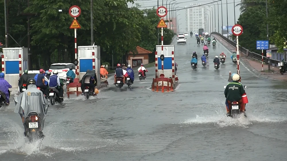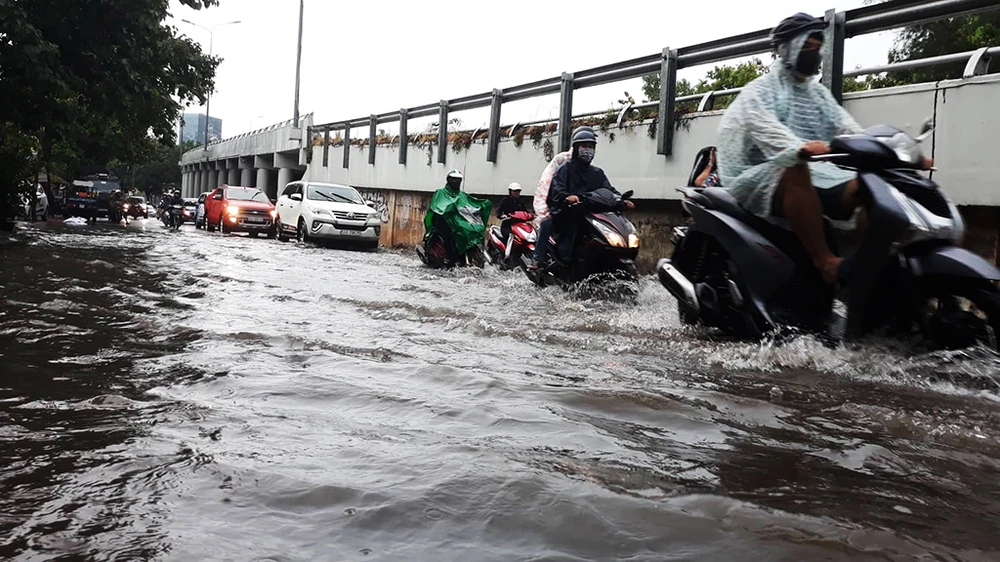 Trận mưa lớn và kéo dài từ trưa đến chiều ngày 3-9 khiến nhiều tuyến đường ở TP.HCM bị ngập nước, ảnh hưởng không nhỏ đến việc đi lại, vui chơi giải trí của người dân trong dịp lễ Quốc khánh.
