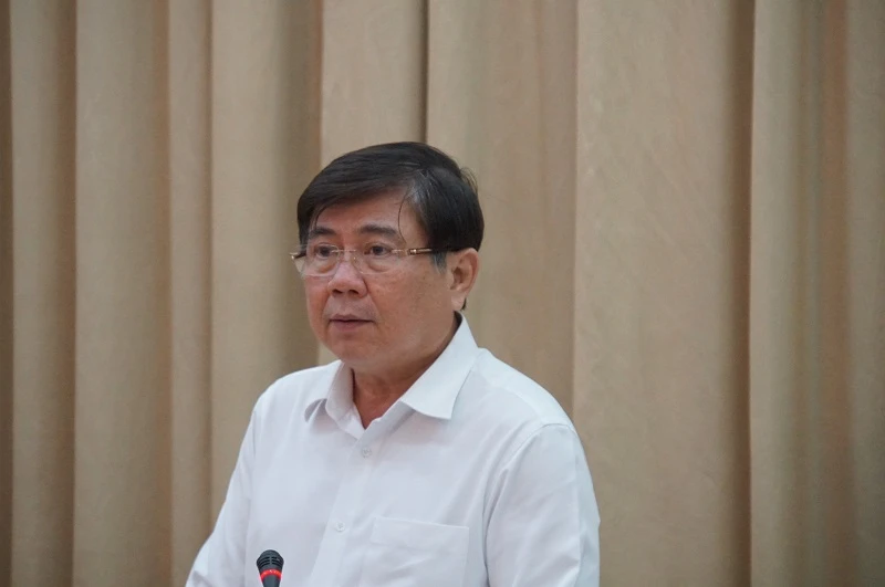 Chủ tịch UBND Nguyễn Thành Phong phát biểu tại cuộc họp. Ảnh: LN