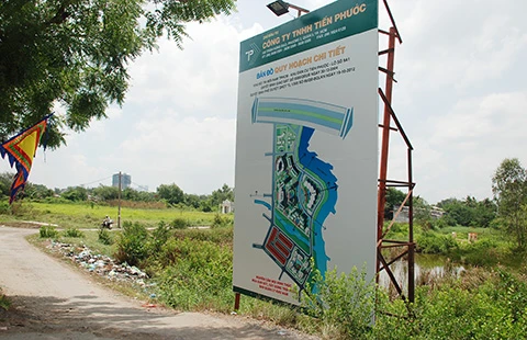 Theo ông Hòa, ngoài Phú Mỹ Hưng, quy hoạch các khu vực dọc theo trục Nguyễn Văn Linh đã bị phá sản. Trong ảnh: Một khu đô thị dọc theo đường Nguyễn Văn Linh hiện chỉ là bãi đất trống. Ảnh: VIỆT HOA