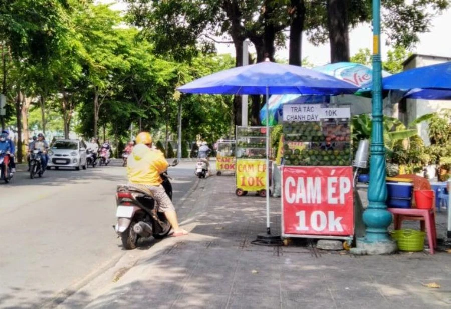Tại nhiều tuyến đường trên địa bàn thành phố như Điện Biên Phủ (Bình Thạnh), Xô Viết Nghệ Tĩnh (quận Bình Thạnh), Mạc Đĩnh Chi (quận 1), Trường Sa (Phú Nhuận), Trường Chinh (quận Tân Bình), Huỳnh Tấn Phát (quận 7)... đầy rẫy những “quán” nước cam vắt nguyên chất giá chỉ 10.000 đồng/ ly.