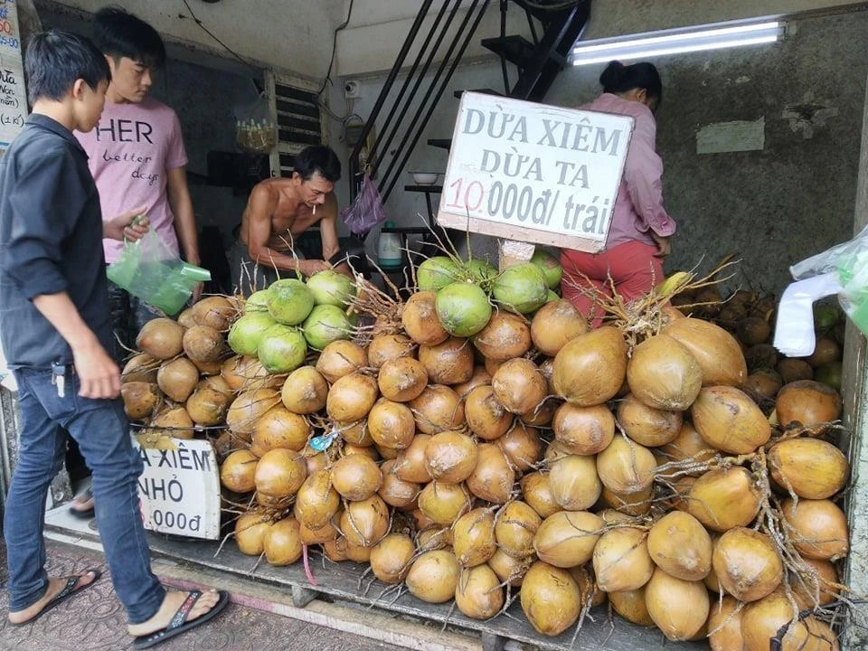 Không chỉ cam vắt nguyên chất 10.000 đồng, những quán bán dừa tươi 8.000- 10.000 đồng/ trái cũng tất nập người mua. Dừa có nguồn gốc từ Bến Tre. Tuy nhiên theo một thương lái thu mua dừa tại Bến Tre tiết lộ, dừa được bán tại vỉa hè hoặc các xe đẩy thường là dừa loại 2, loại 3. Nước sẽ không ngọt bằng dừa loại 1 được xuất khẩu hoặc bán cho các công ty sản xuất chế phẩm từ dừa.