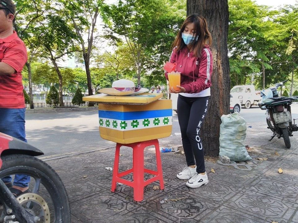 Điểm đặc trưng của những quán nước lưu động này là nằm ngay lề đường. Người bán chỉ sắm một chiếc xe đẩy hoặc một cái bàn, một thùng xốp đựng nước đá, một hộp đường, cam tươi, ly nhựa và ống hút... là đủ kiếm sống trong mùa nắng nóng này.