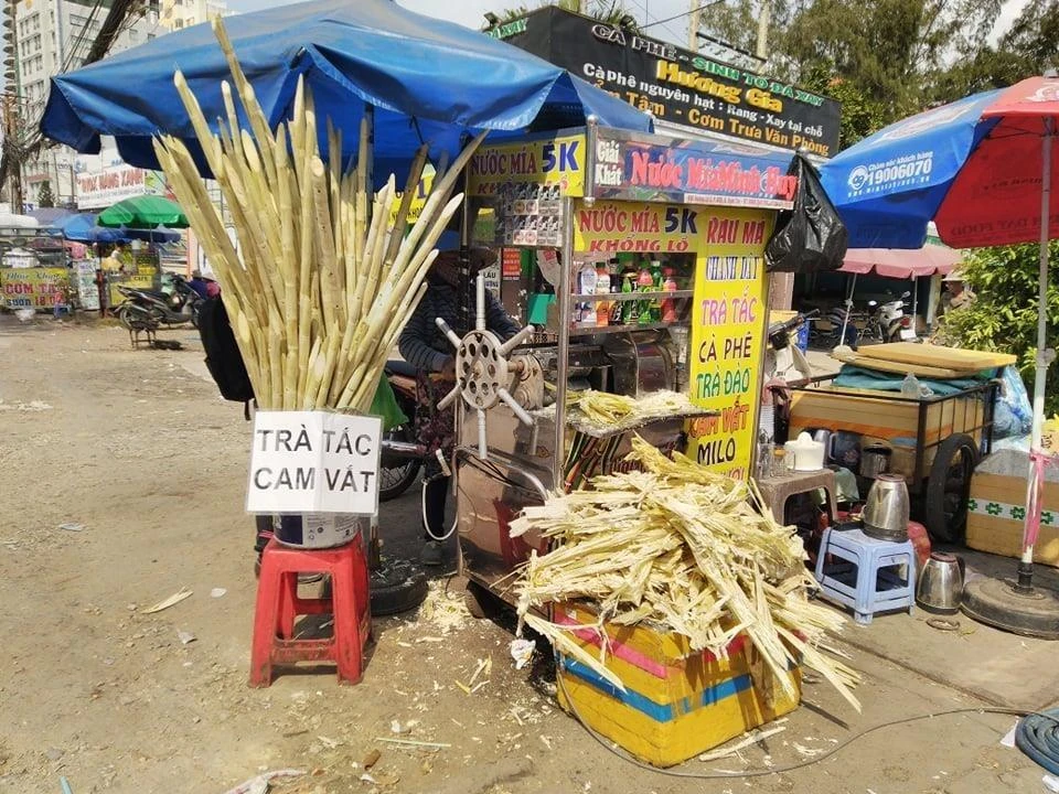 Dọc đường Trường Sa, chưa đầy 50m, lại có một quán bán nước cam ép chỉ 10 ngàn đồng/ly. Ảnh: Thu Hà