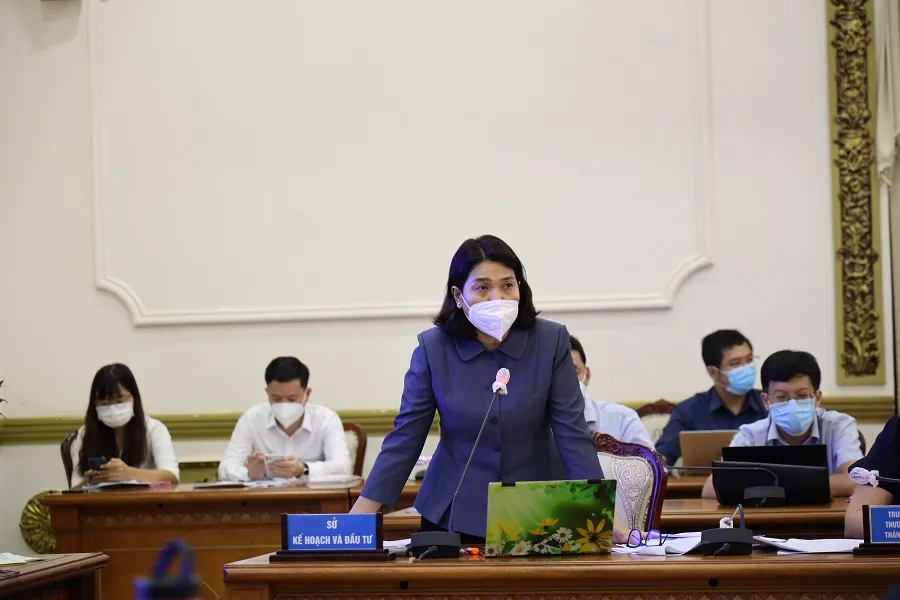 Tại hội nghị, Giám đốc Sở Kế hoạch và Đầu tư Lê Thị Huỳnh Mai đã trình bày kế hoạch phòng chống COVID-19 và phục hồi kinh tế của TP.HCM.