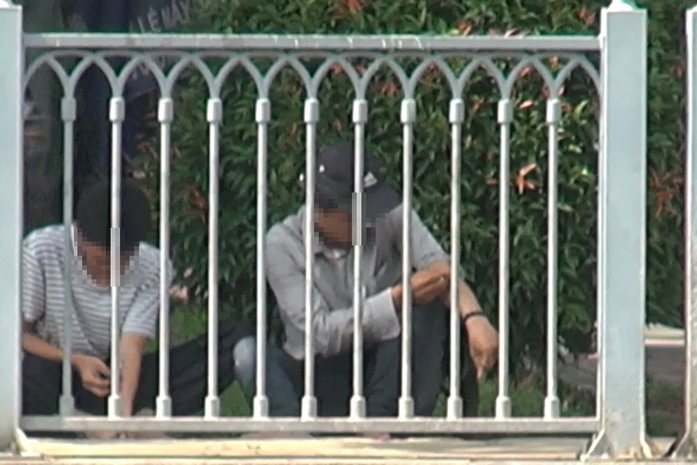 Ống kính chúng tôi ghi nhận có người thản nhiên tháo dây nịt quần, ngồi chích ma túy vào bẹn. Người này thản nhiên, chậm rãi ngồi xóc rửa chiếc kim tiêm gần chục phút mới đứng lên giữa thanh thiên bạch nhật.