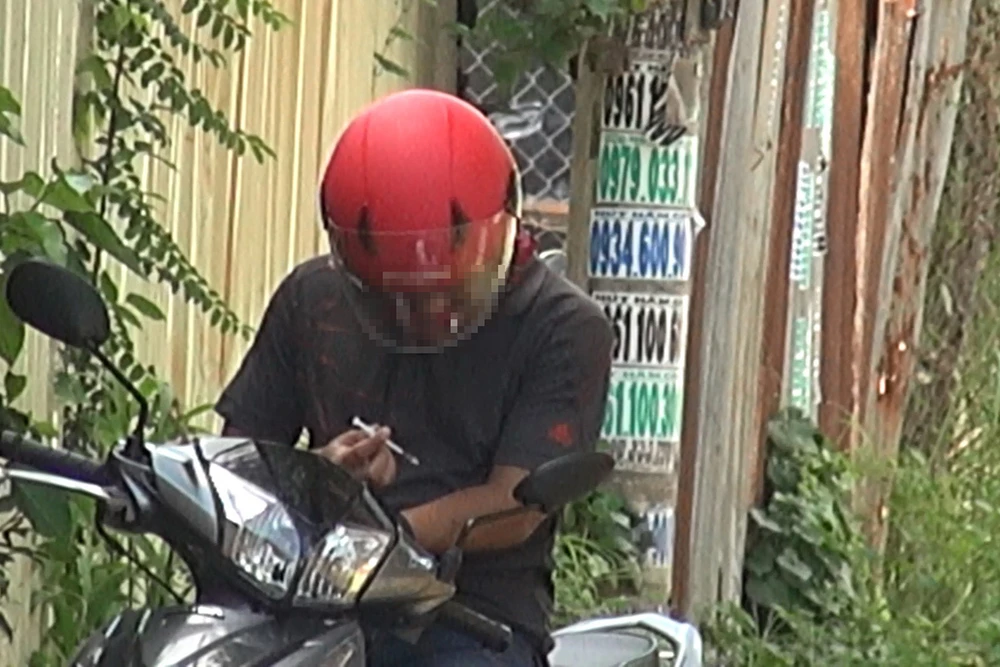 Chừng mấy phút sau, một người đàn ông khác chạy xe máy biển số Đắk Nông đến con hẻm. Người này ăn bận lịch sự, đeo đồng hồ Apple Watch, dùng điện thoại đắt tiền, xe máy rất mới, thản nhiên dừng xe, lấy kim tiêm chích vào cánh tay rồi vứt ra vệ đường...