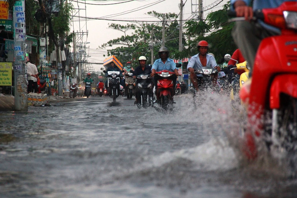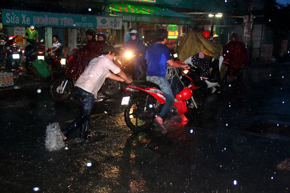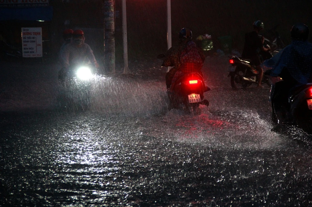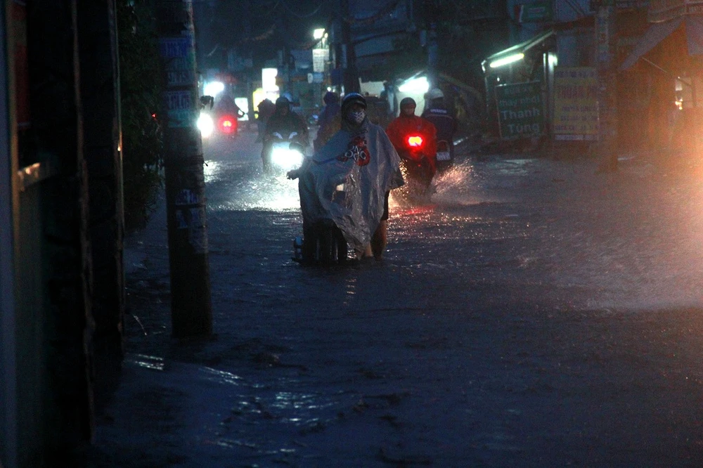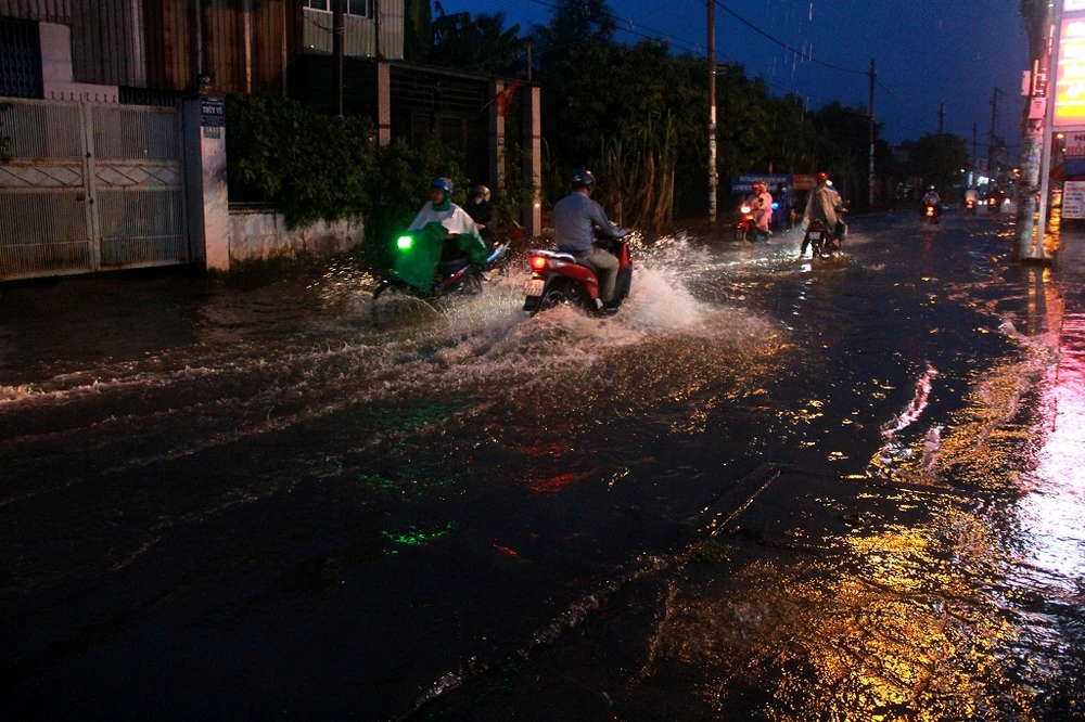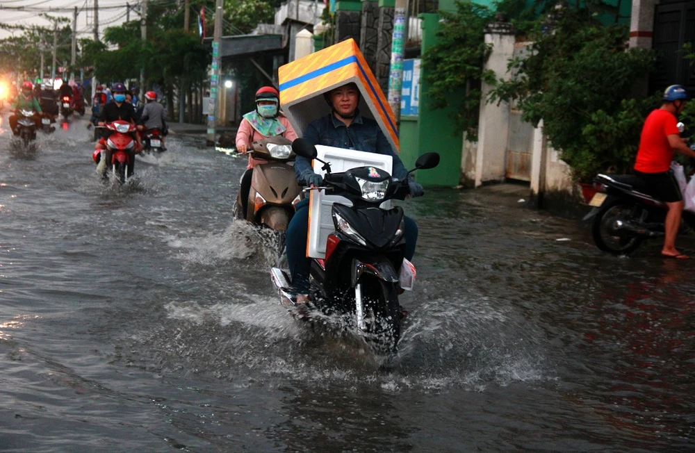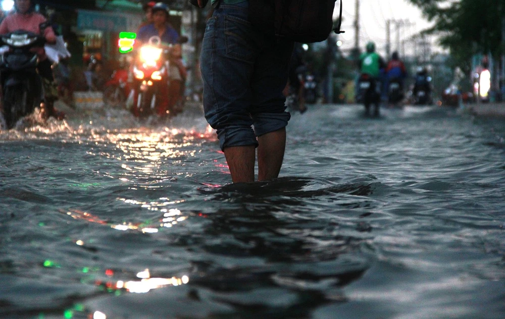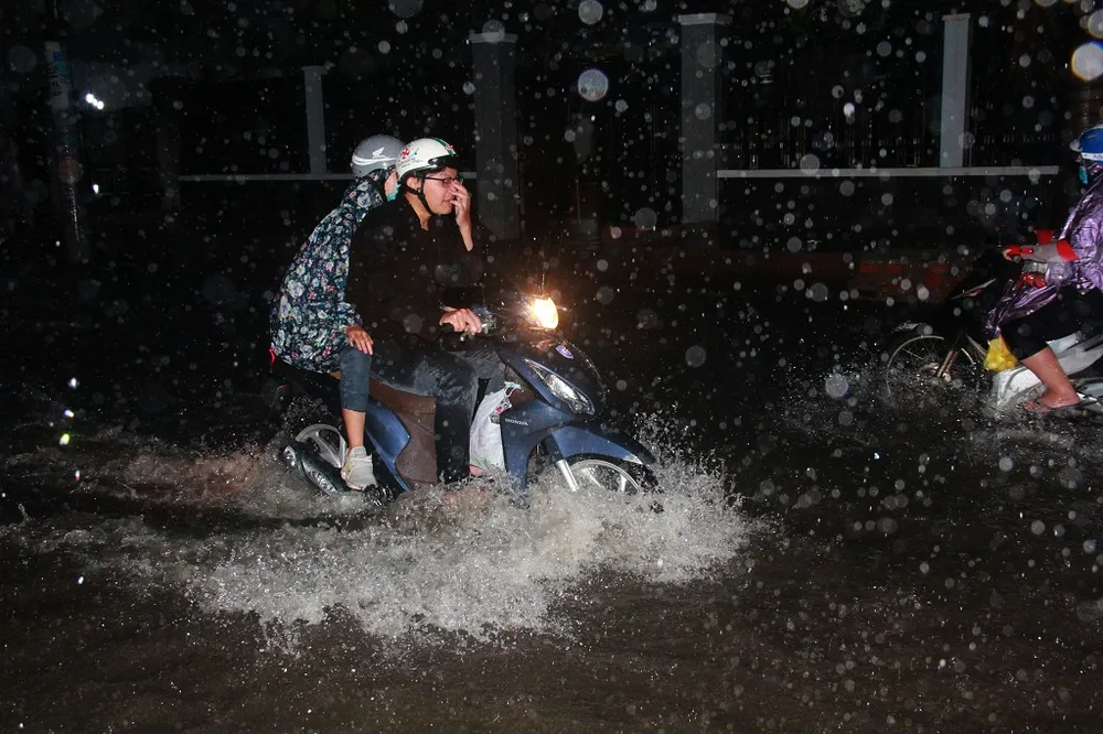 Mưa lớn kéo dài cộng thêm triều cường đã gây ngập nhanh chóng.