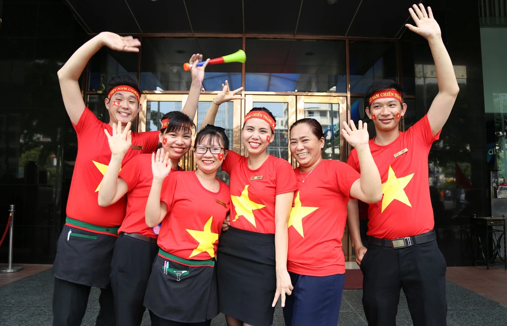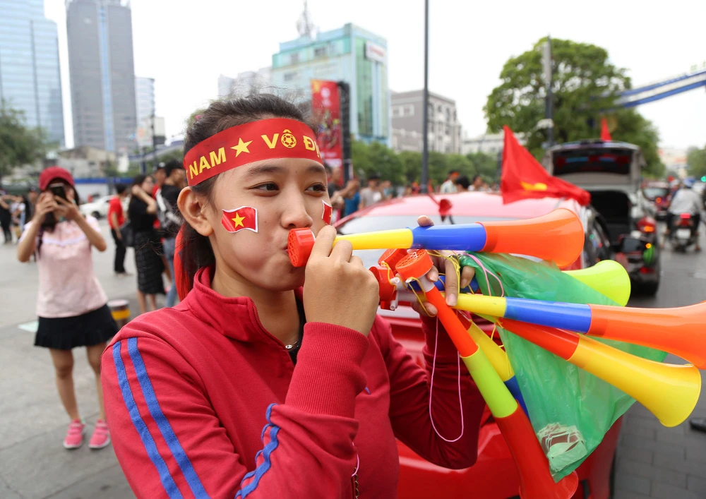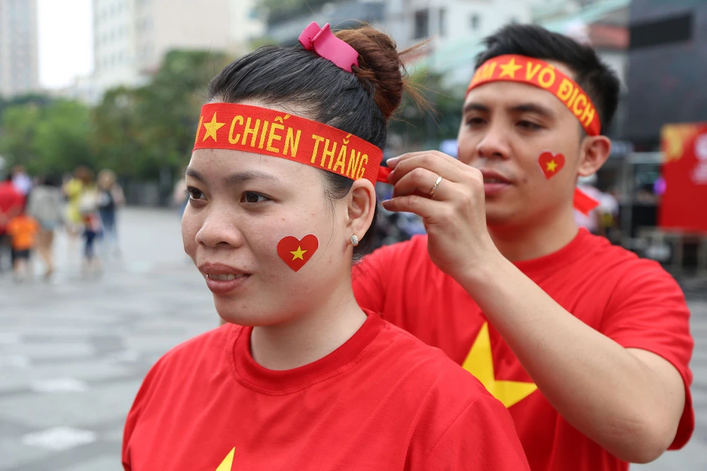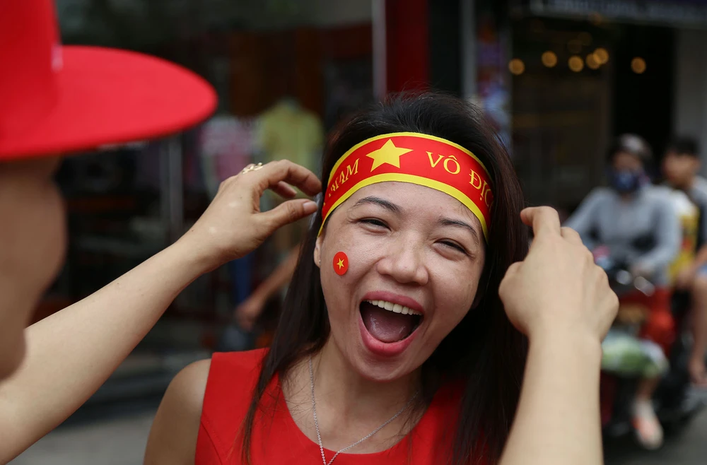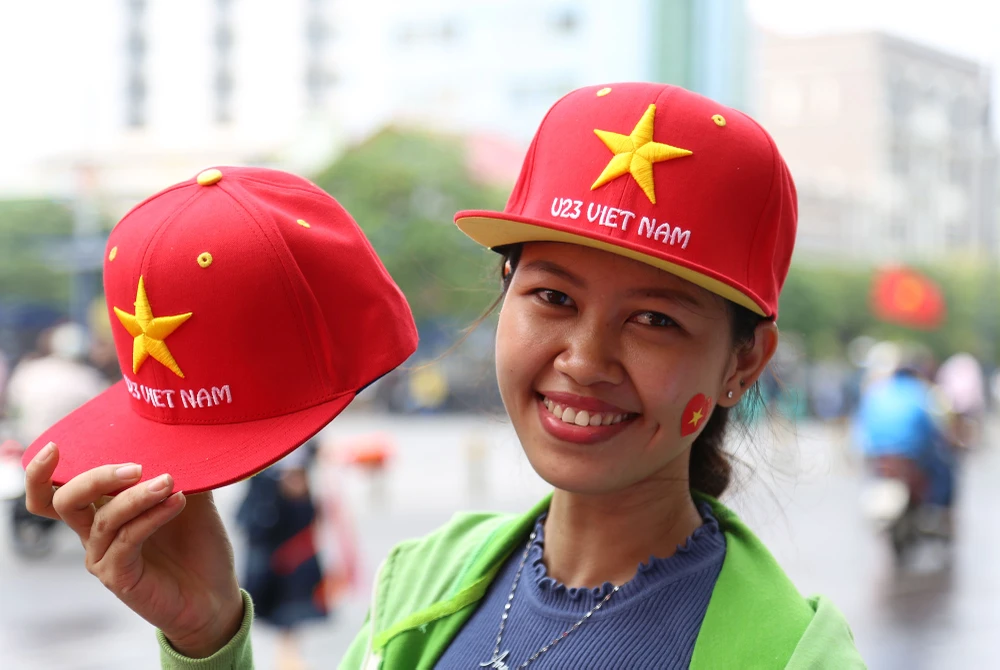 CĐV với nón đỏ hình ngôi sao vàng Việt Nam.