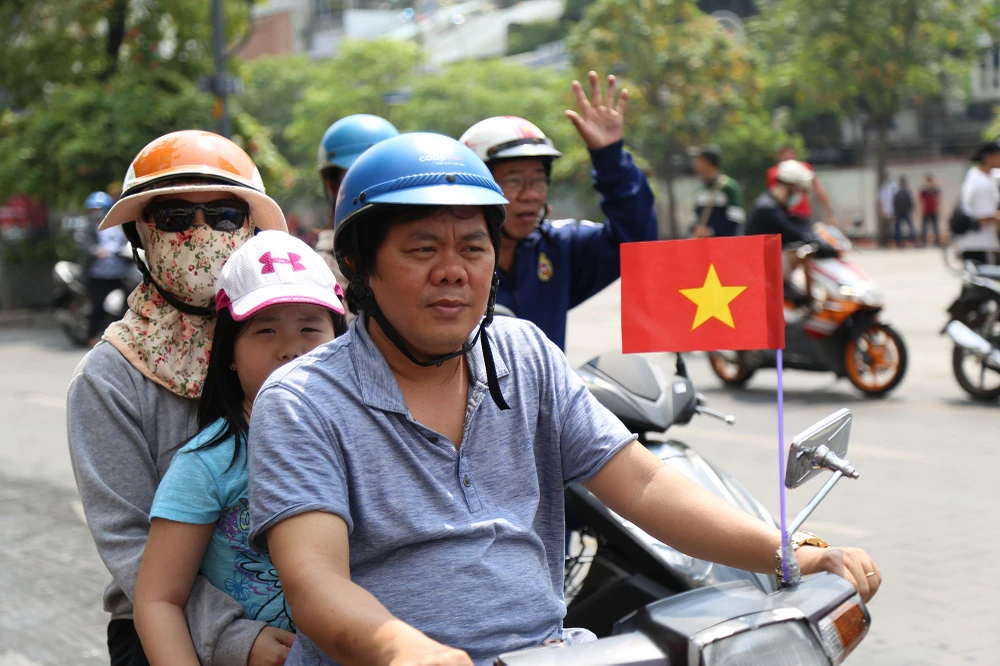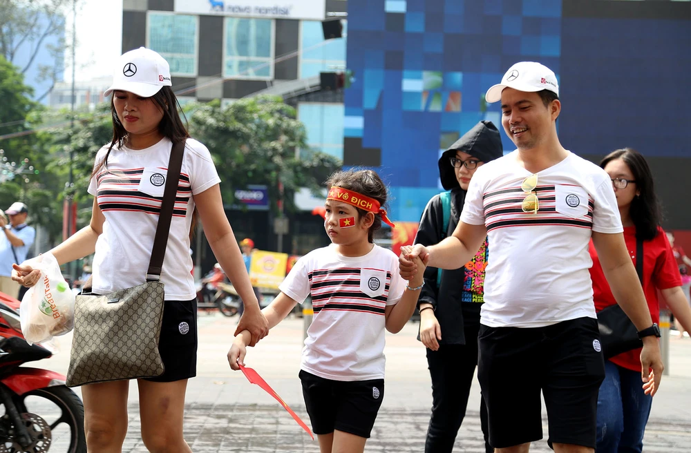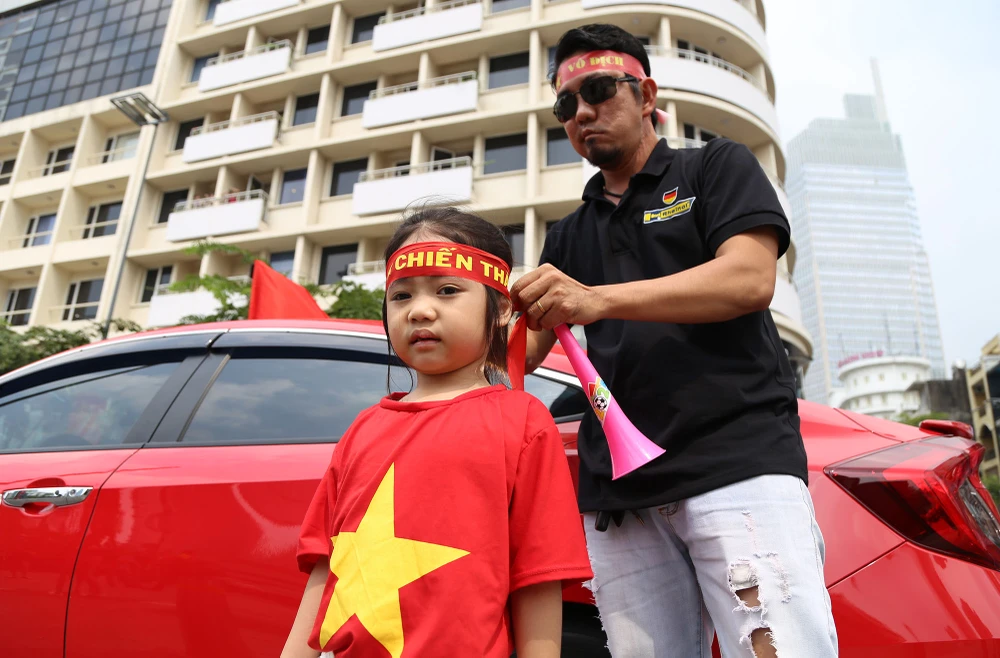 Cả gia đình xuống phố cổ vũ đội tuyển.