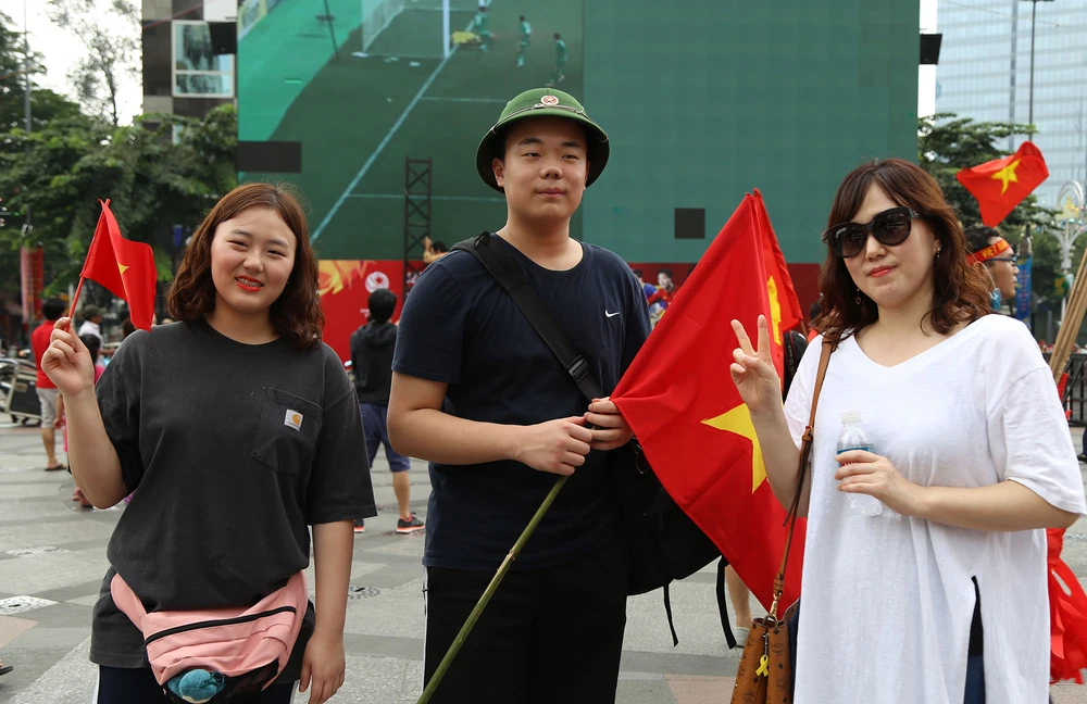 Những người bạn Hàn Quốc cũng xuống phố ủng hộ U-23 Việt Nam và vị HLV người Hàn Quốc.