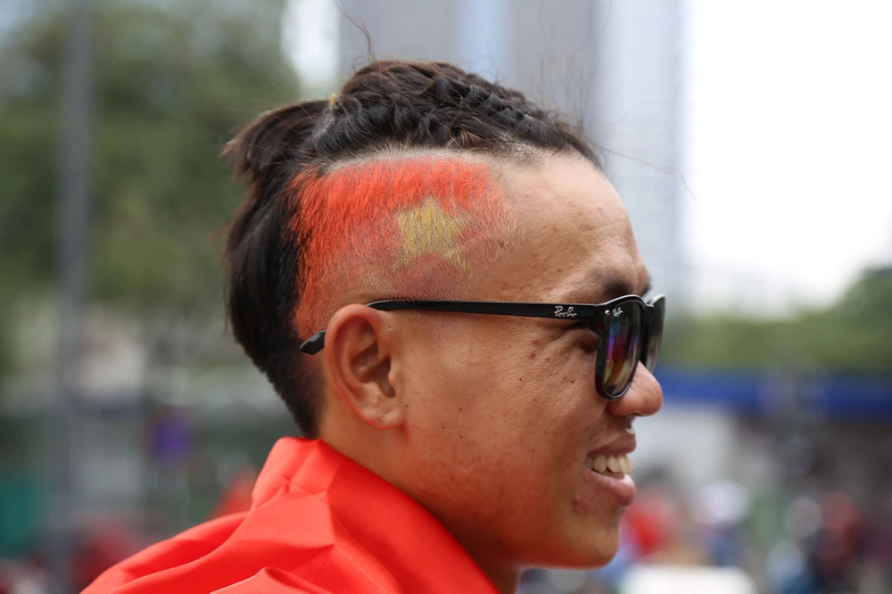 Một CĐV cắt và nhuộm màu tóc hình lá cờ Việt Nam.