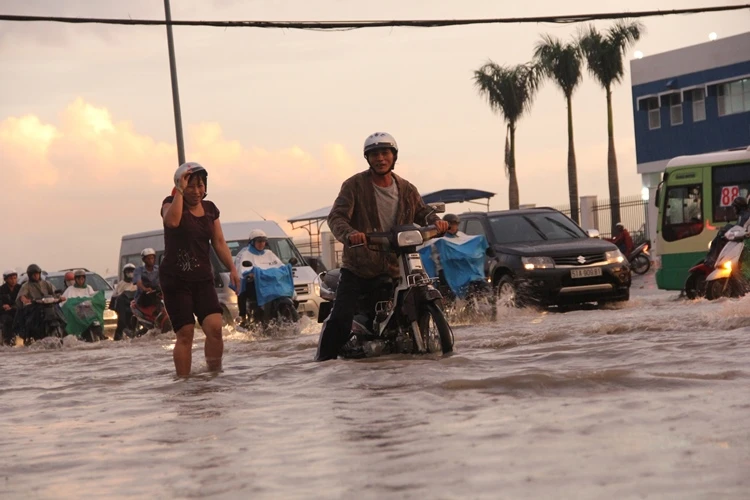 Ở quận 7, đoạn đường Huỳnh Tấn Phát nhiều nơi cũng bị ngập nặng, đặc biệt là khu dân cư Nam Long, Phường Tân Thuận Đông, quận 7. Tại đây các con đường nội bộ trong khu dân cư nước ngập trắng xóa, cao hơn nửa bánh xe, ngập hết lên cả lề đường. Người dân đi lại hết sức khó khăn.