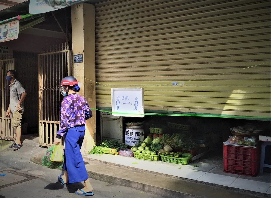 Đối với chợ không có nhà lồng, đơn vị quản lý xem xét việc đảm bảo quy định phòng chống dịch, tuân thủ 5K. Theo đó, đối với các tiểu thương cần thực hiện việc kẻ vạch phân rõ khu vực điểm kinh doanh đảm bảo khoảng cách tối thiểu 1,5 m cho người dân khi mua sắm.