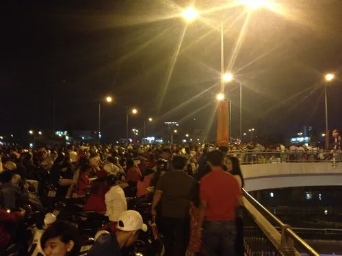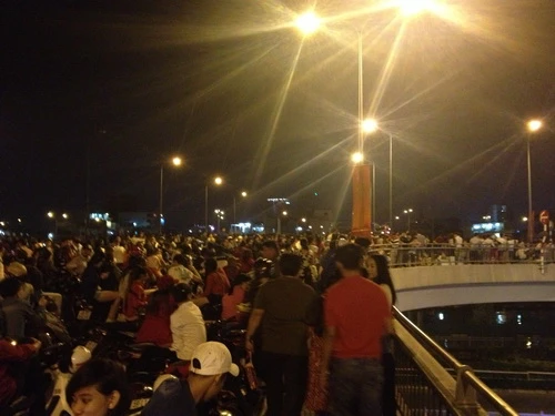 Rất đông người dân tập trung ở khu vực trung tâm thành phố để chờ xem bắn pháo hoa.
