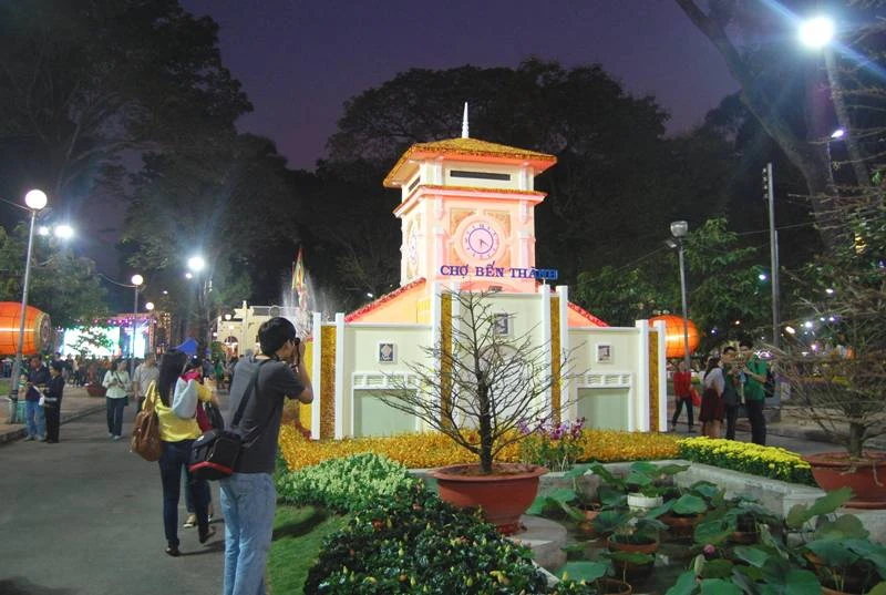 Hội hoa xuân tại Công viên Tao Đàn (TP.HCM) cũng thu hút rất đông người đến tham quan và đón giao thừa