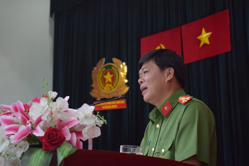 Đại tá Nguyễn Thanh Hưởng, Phó Giám đốc Công an TP.HCM thông tin tại Hội nghị tập huấn công tác phòng cháy chữa cháy và cứu nạn cứu hộ (PCCC & CNCH). Hội nghị vừa diễn ra sáng nay, 9-1, tại Cảnh sát PC&CC TP.HCM.