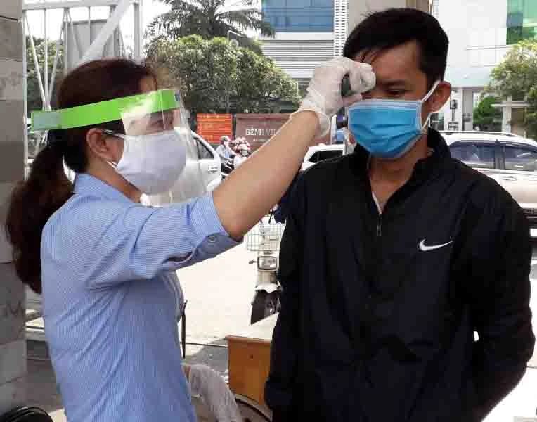 Theo Bộ tiêu chí đánh giá an toàn, khách vào cửa hàng ăn uống phải được đo nhiêt độ. Ảnh: TRẦN NGỌC