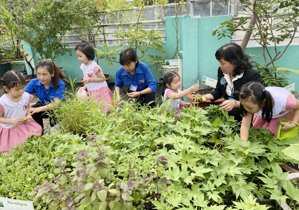 Đồng quan điểm, cô Lê Thị Thanh Xuân, Hiệu trưởng Trường Mầm non Cẩm Tú (quận Bình Tân) chia sẻ: Mô hình “Trường học xanh” đã giúp cho các em có ý thức trong việc bảo vệ môi trường. Nếu các em học sinh có ý thức bảo vệ môi trường ở trường học thì chắc chắn các em sẽ làm tốt ở nhà hay ra ngoài xã hội.