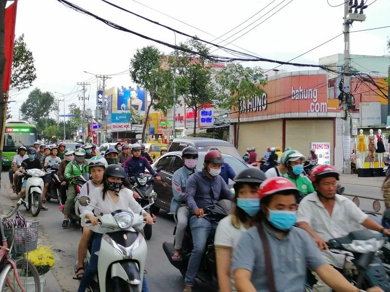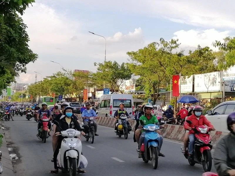 Không còn cảnh tắc đường như mọi khi, lượng phương tiện từ cầu Chánh Hưng đổ dồn vào đường Phạm Hùng chỉ gây ùn ứ nhẹ.