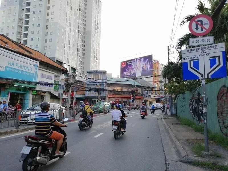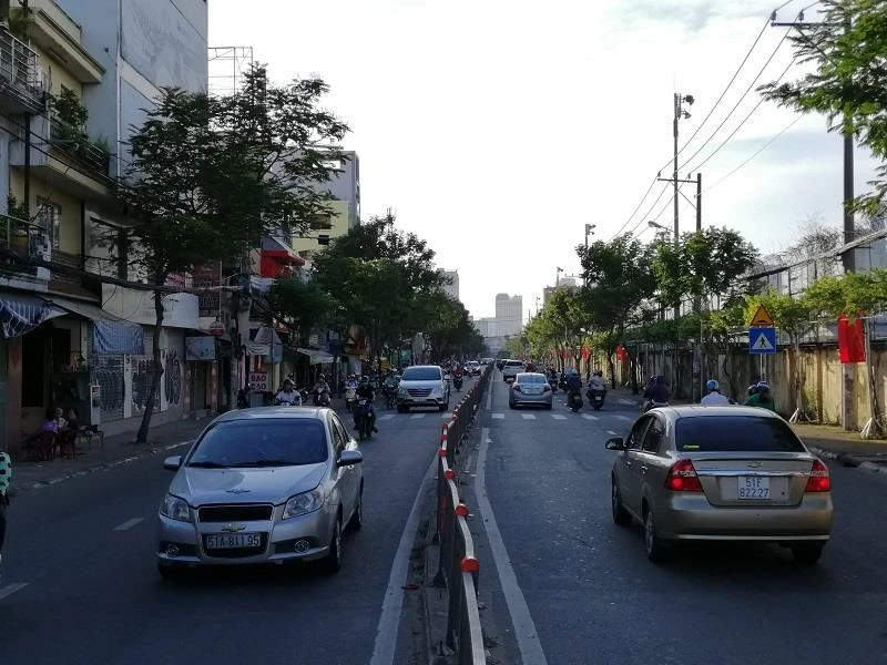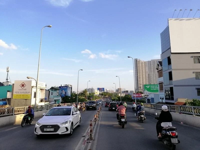 Đây là cảnh phương tiện từ cầu Chánh Hưng vào đường Phạm Hùng.