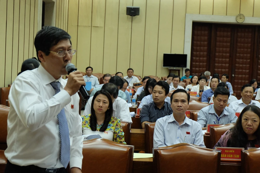 Đại biểu HĐND TP.HCM phát biểu tại buổi thảo luận tại tổ chiều 28-7. Ảnh: VH.