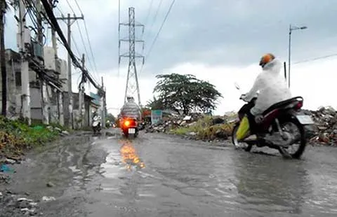 Một số con hẻm ở quận Bình Thạnh, Thủ Đức nước lên gần nửa bánh xe máy. Cụ thể, các con hẻm thuộc đường số 6, khu phố 2, phường Hiệp Bình Chánh (Thủ Đức) nước lênh láng và rút rất chậm khiến nhiều người đi đường di chuyển rất khó khăn… Đoạn đường dài gần 2 km từ chùa Ưu Đàm đến trại cá sấu Hoa Cà (phường Hiệp Bình Chánh) đang xuống cấp, sau mưa thì càng thêm lầy lội vì có đoạn ngập sâu 20-30 cm. “Đường này đã hư hỏng 2-3 năm nay, chỉ cần mưa nhỏ là ngập… Mấy năm nay nước cứ ứ đọng gây cảnh dơ bẩn, nhớp nháp” - chị Phạm Thị Bé (phường Hiệp Bình Chánh) cho biết.
