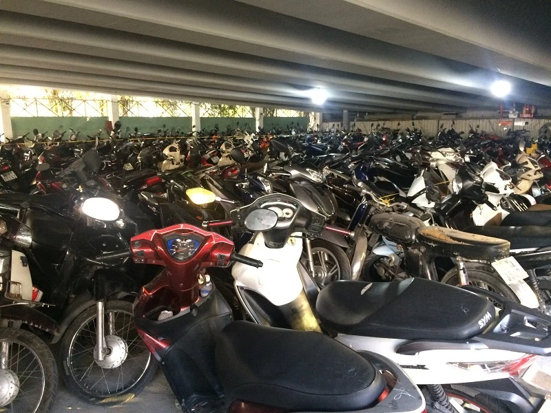 Bãi giữ xe gầm cầu Calmette không còn một chỗ trống.