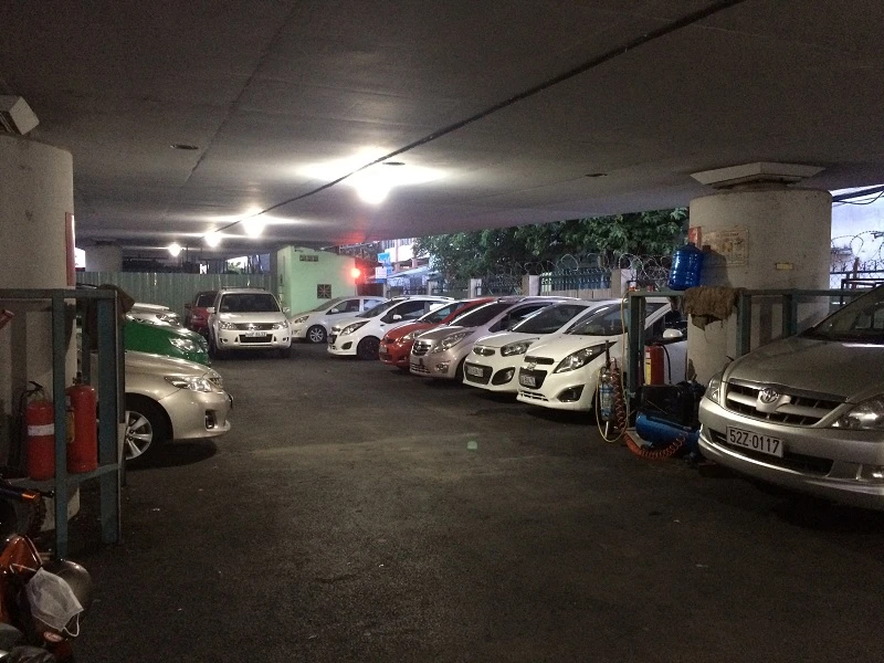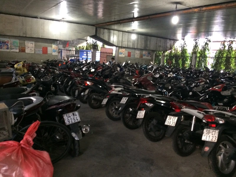 Cũng tại quận 5, bãi xe gầm cầu Nguyễn Tri Phương hoạt động 24/24 giờ, hết xe này ra lại có xe khác vào gửi.