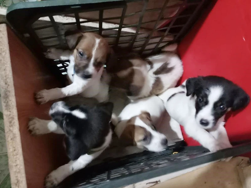Chị Ng. nuôi năm con chó bằng sữa hộp vì kẻ trộm bắt mất chó mẹ. Ảnh: NHƯ Ý