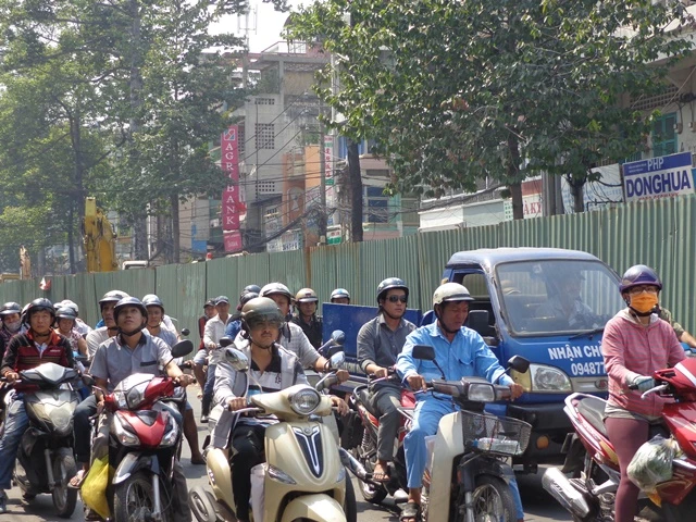 Ở chiều từ Hậu Giang đến Lê Quang Sung của đường Mai Xuân Thưởng rào chắn bằng tôn lấn ra chỉ để lại mặt đường hơn 1 m cho xe máy lưu thông. Bên trong hàng rào, ngay trên nóc nhà ban chỉ huy công trình đã thấy treo băng rôn đỏ tươi mừng năm mới. Đây như là chỉ dấu cho biết hàng rào này sẽ ăn tết cùng người dân?