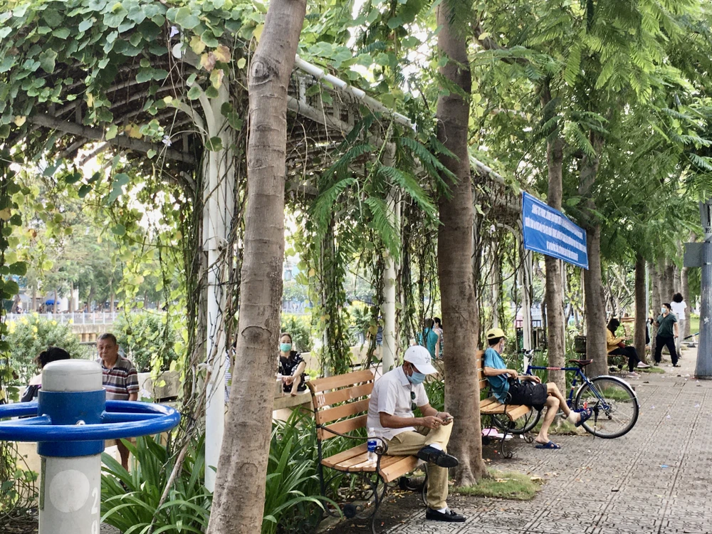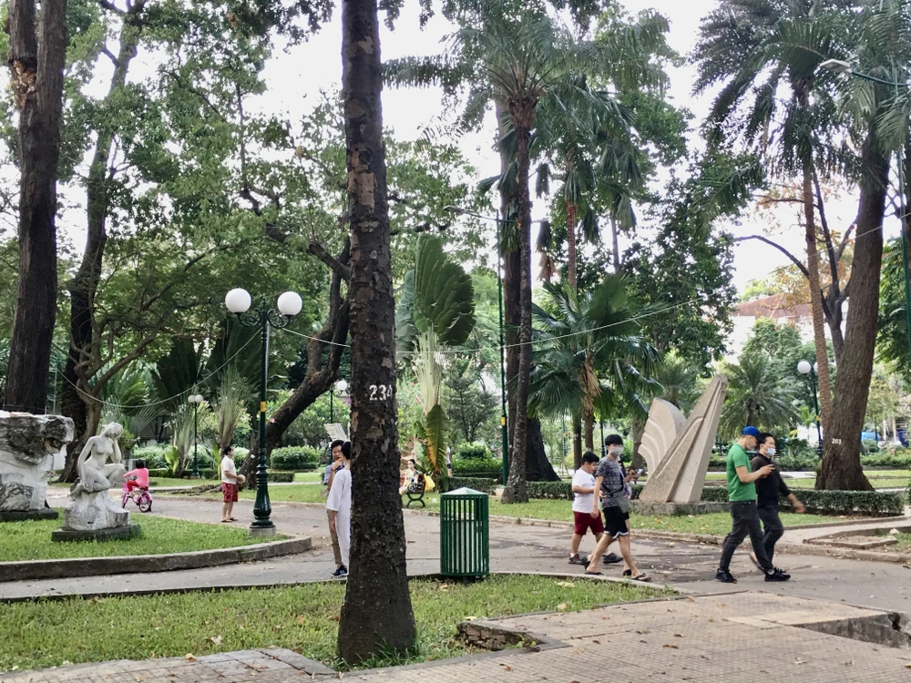 Tại Công viên Tao Đàn có không ít người dân đi dạo, hóng mát. Ảnh: THY NHUNG