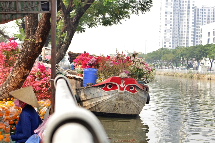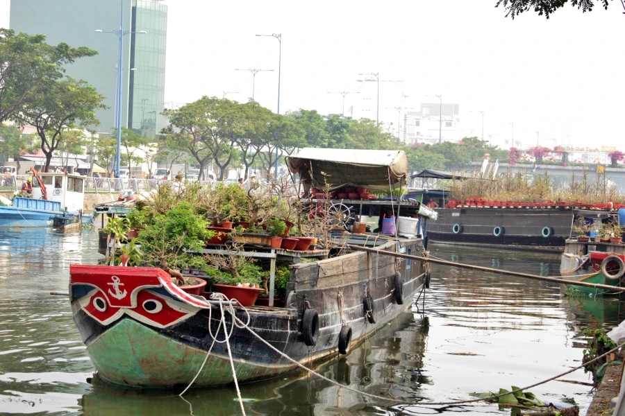 Những thuyền hoa khoe sắc rực rỡ, đẹp cả một khúc kênh Tàu Hũ.
