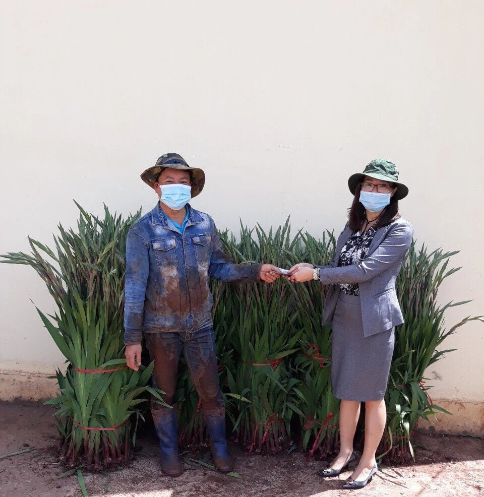Một số cơ quan doanh nghiệp đến tận vườn mua hoa lay ơn hỗ trợ bà con huyện Đức Trọng. Ảnh: Thanh Sang