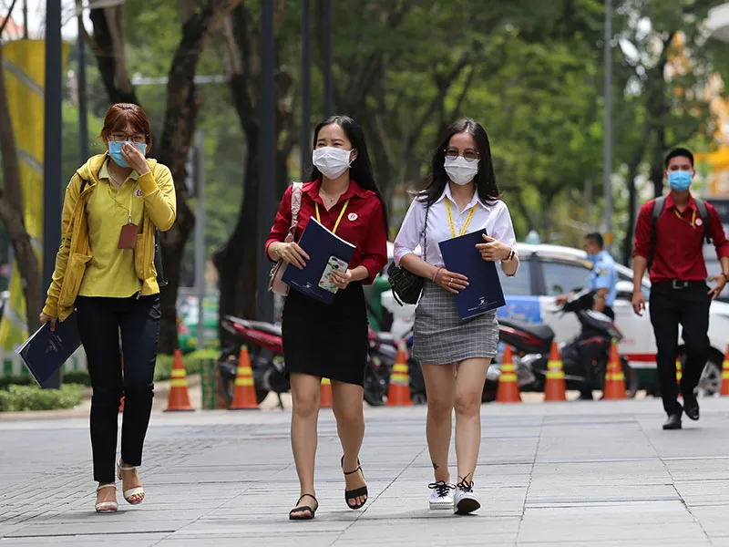 Người dân TP.HCM đeo khẩu trang ra đường để phòng COVID-19. Ảnh: HOÀNG GIANG