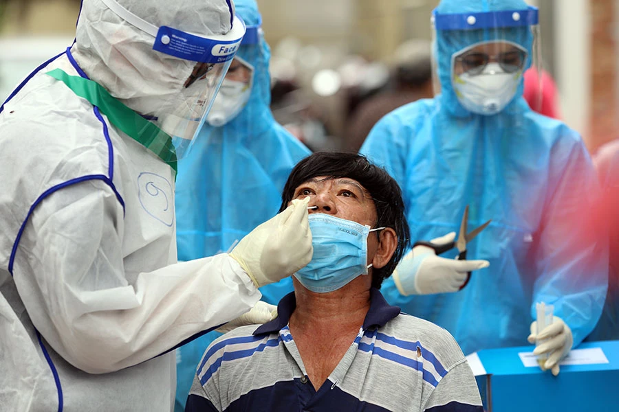 Người dân quận Tân Phú, TP.HCM được thực hiện lấy mẫu tầm soát dịch
