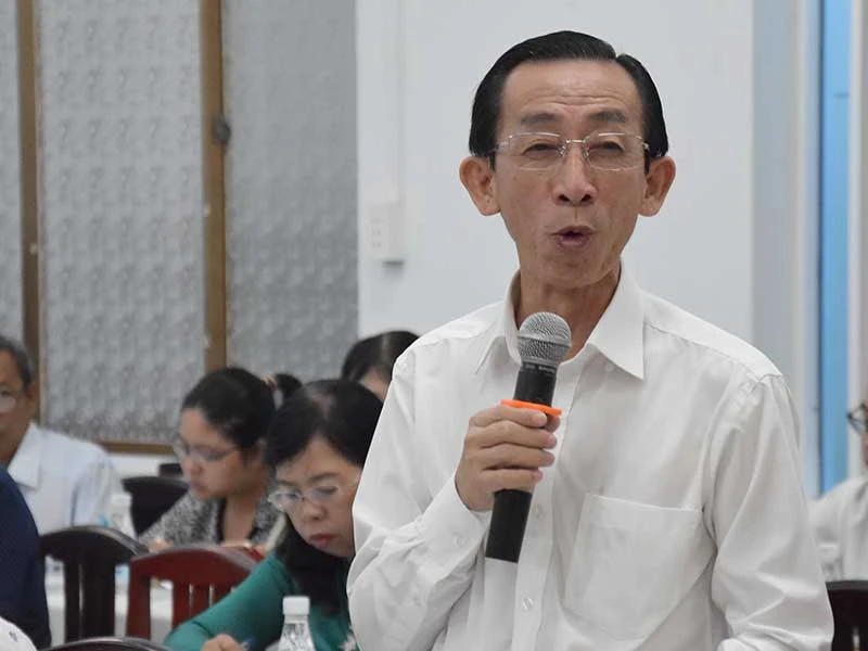 PGS-TS Trần Hoàng Ngân, Giám đốc Học viện Cán bộ TP.HCM, nêu ý kiến ủng hộ đề án tăng thu nhập cho CBCCVC TP. Ảnh: T.LÂM