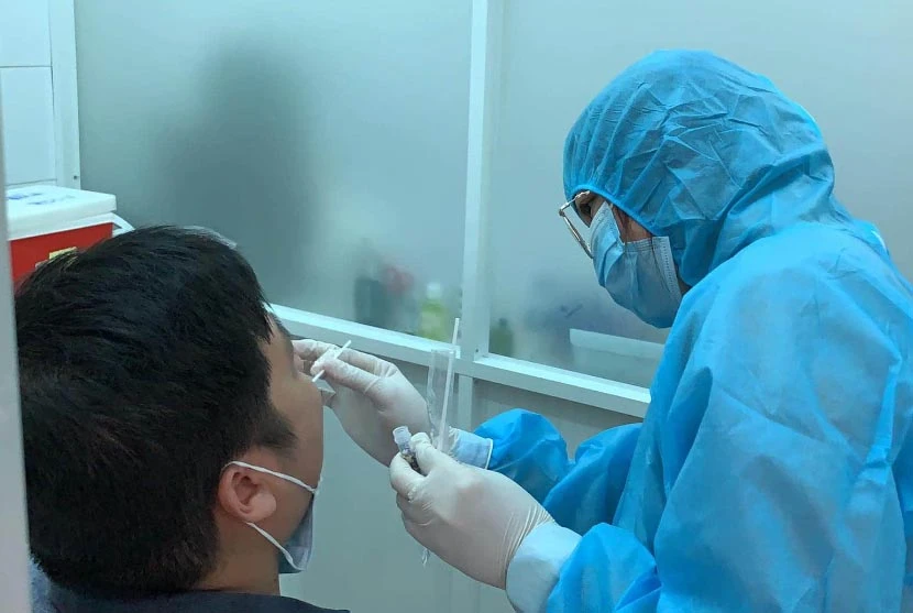 Trung tâm Y tế quận 3, TP.HCM lấy mẫu xét nghiệm một người về từ Đà Nẵng. Ảnh: HOÀNG LAN