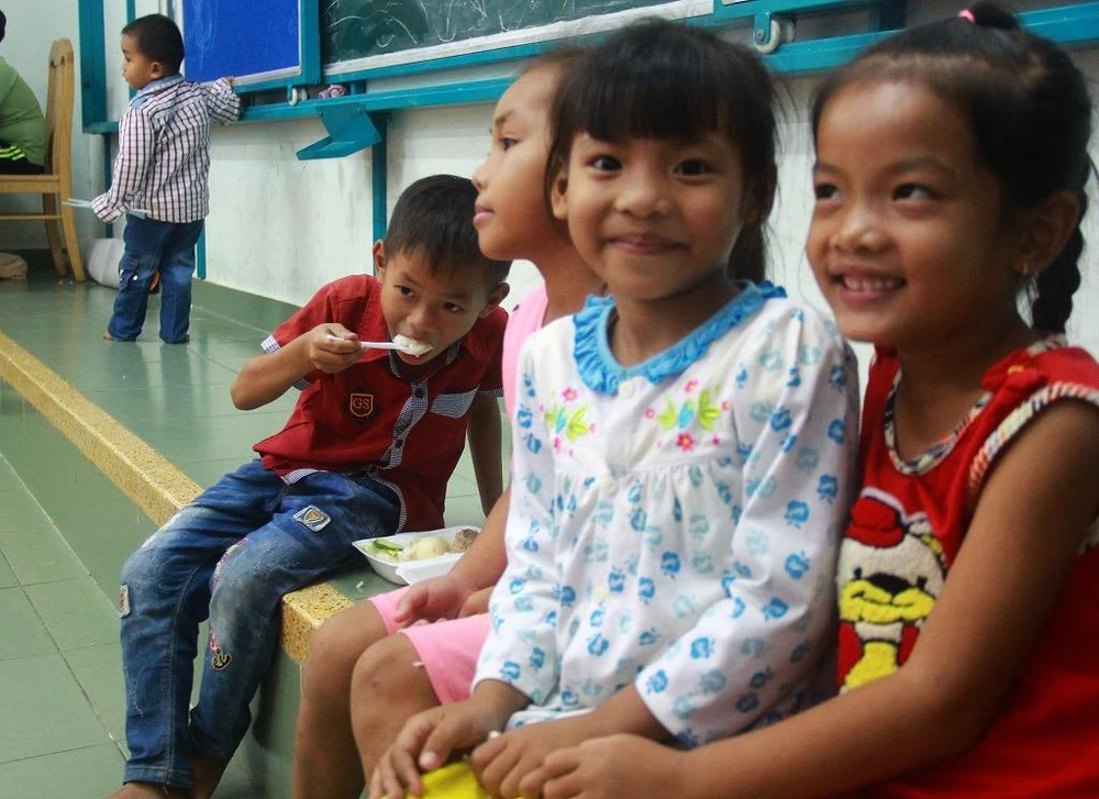 Ở điểm trú bão tại Trường THCS Cần Thạnh, đa phần là trẻ em, người già và phụ nữ.