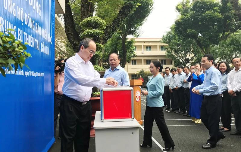Ngày 16-10, Cụm thi đua số 6, Công đoàn Viên chức TP.HCM (gồm các ban của Thành ủy, Văn phòng Thành ủy, Công đoàn Cơ quan Đảng ủy Khối Dân - Chính - Đảng TP, Ban Dân tộc TP) tổ chức lễ phát động đợt quyên góp ủng hộ đồng bào miền Bắc, miền Trung bị thiên tai, bão lũ.