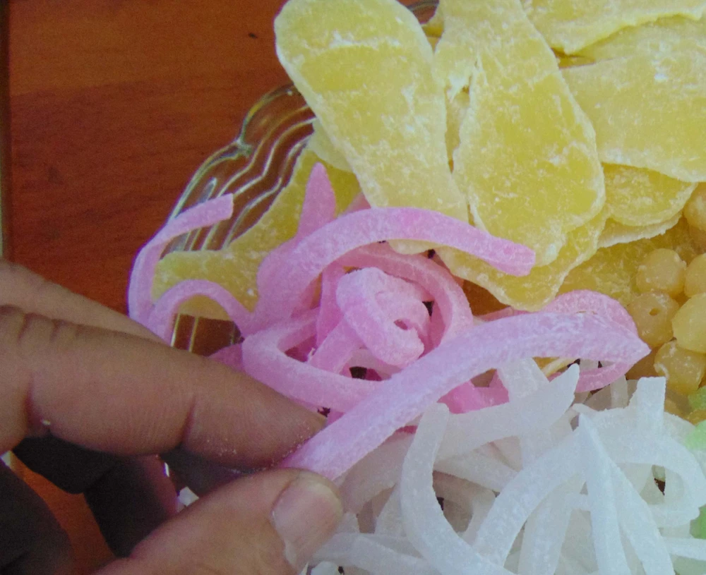Mứt gừng phát hiện có chất độc hại tinopal. Ảnh: TRẦN NGỌC