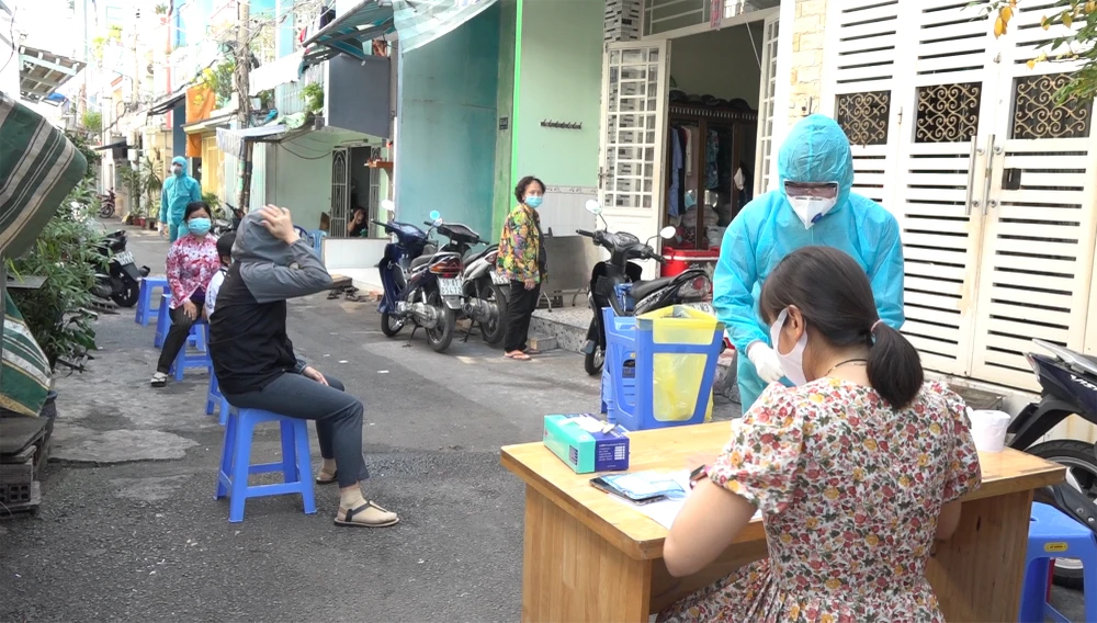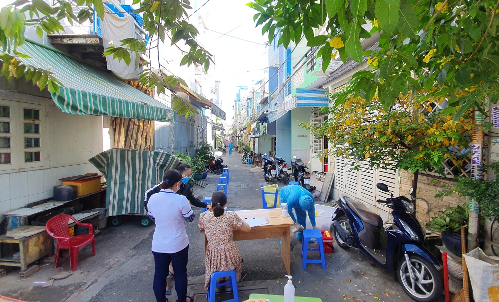 Ông Trần Đức Thọ, Chủ tich UBND phường 7, quận 6, cho biết tối 30-11, phường đã phối hợp cùng Trung tâm y tế quận 6 và Trung tâm kiểm soát bệnh tật TP.HCM lấy mẫu cho gần 270 nhân khẩu tại 92 hộ trong hẻm lô C và lô E.