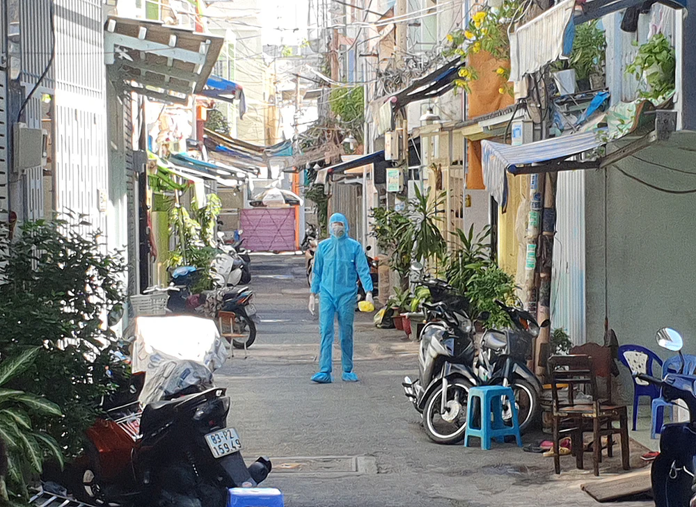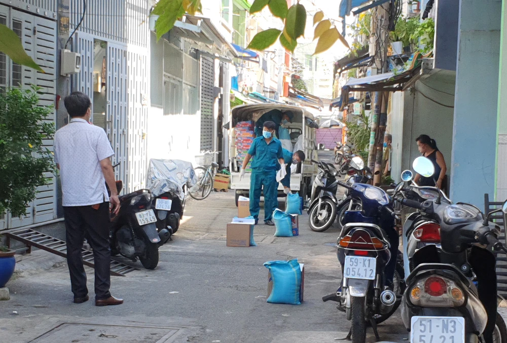 Người dân trong hẻm được yêu cầu ở yên trong nhà, đeo khẩu trang và không giao tiếp với gia đình khác nhằm đảm bảo phòng chống dịch.