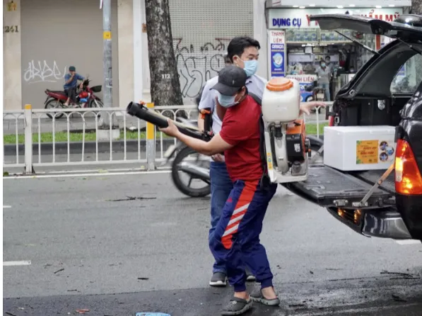 Khử khuẩn khu vực ca nhiễm COVID-19 sinh sống. Ảnh: HCDC