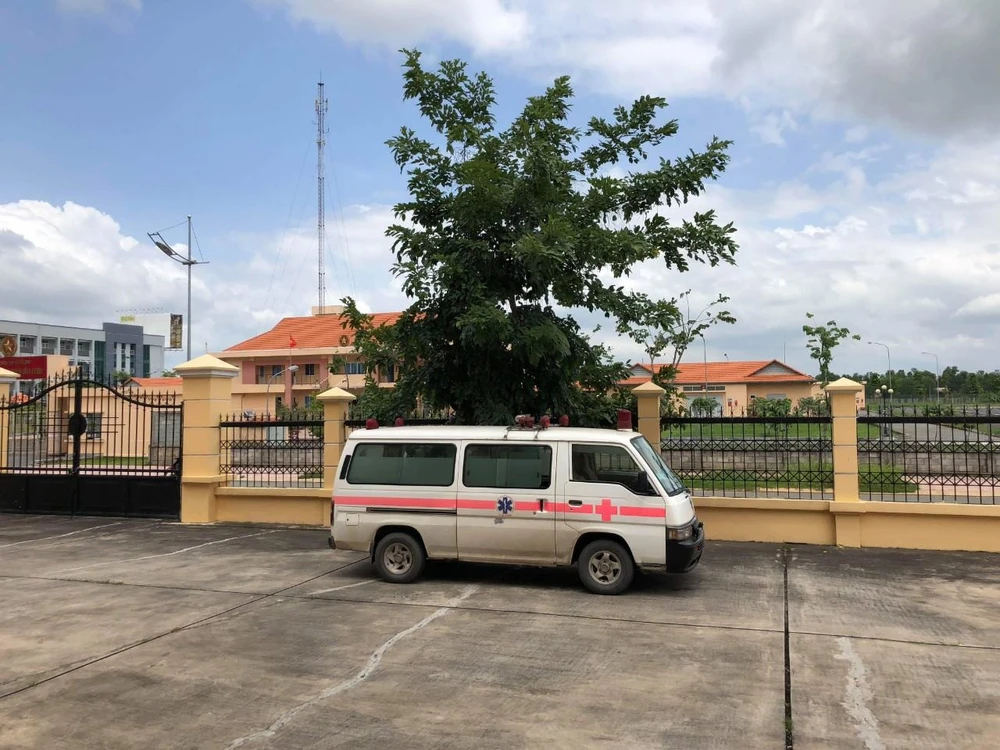 Xe cứu thương tại TAND huyện Bình Chánh.